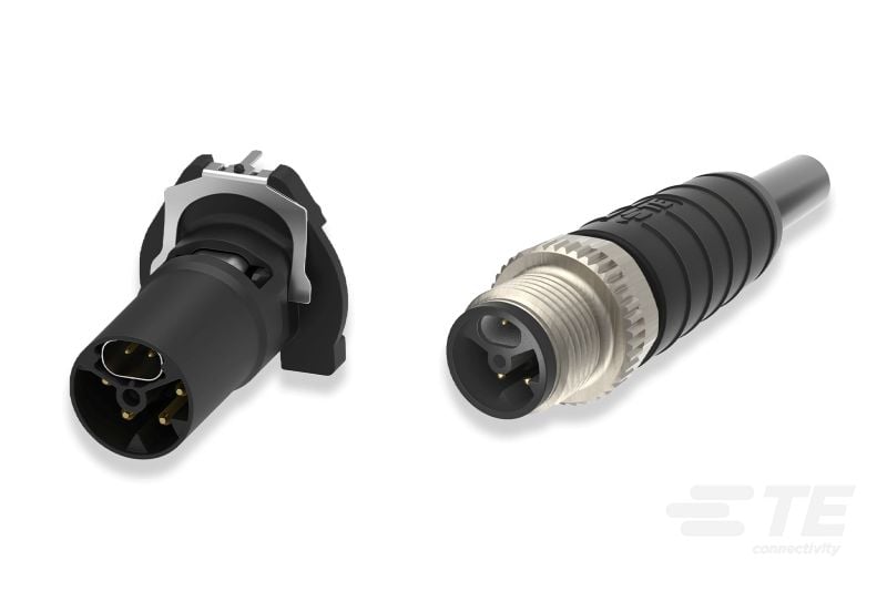 TE Connectivity’s SPE-M12 hybrid connectors transmit data and power from a single cable. Image used courtesy of TE Connectivity