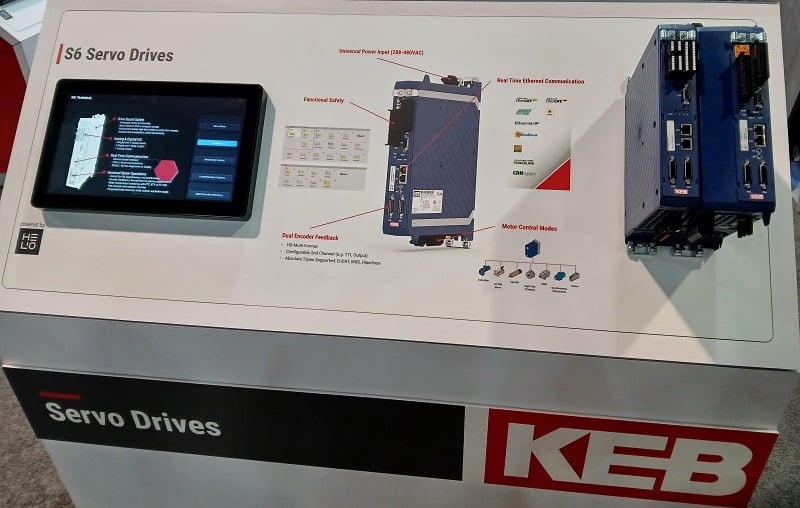 Along with motors themselves, KEB demonstrated its drive units, particularly the S6 series servo drives that are used for most typical packaging applications. Throughout the servo and VFD series, KEB supports multiple communication protocols, including EtherNet/IP, EtherCAT, PROFINET, and Modbus, along with safety features such as Safe Torque Off (STO) or Safe Limited Speed (SLS).