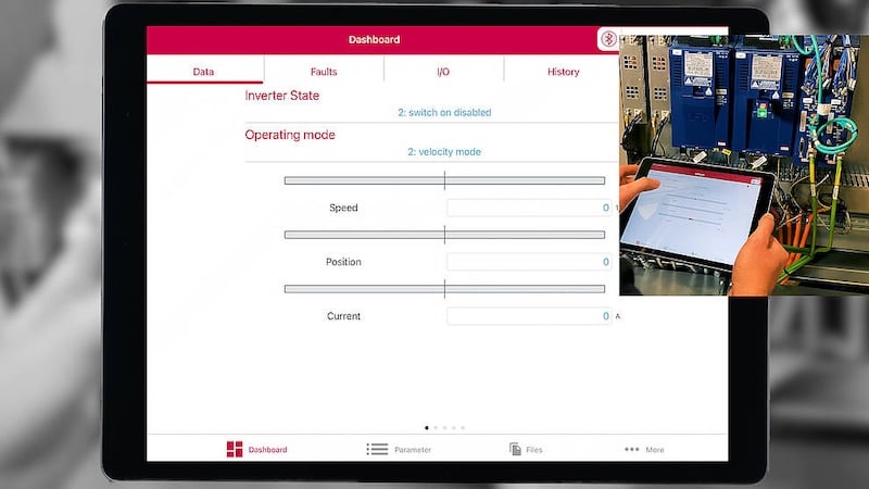 To extend drive monitoring to smartphones and tablets via WiFI or Bluetooth, the COMBIVIS Mobile App supports S6 and F6 controllers, offering a user-friendly interface for accessing error logs, parameter lists, and I/O status checks. With the mobile application, data can also be backed up and restored without needing a computer.