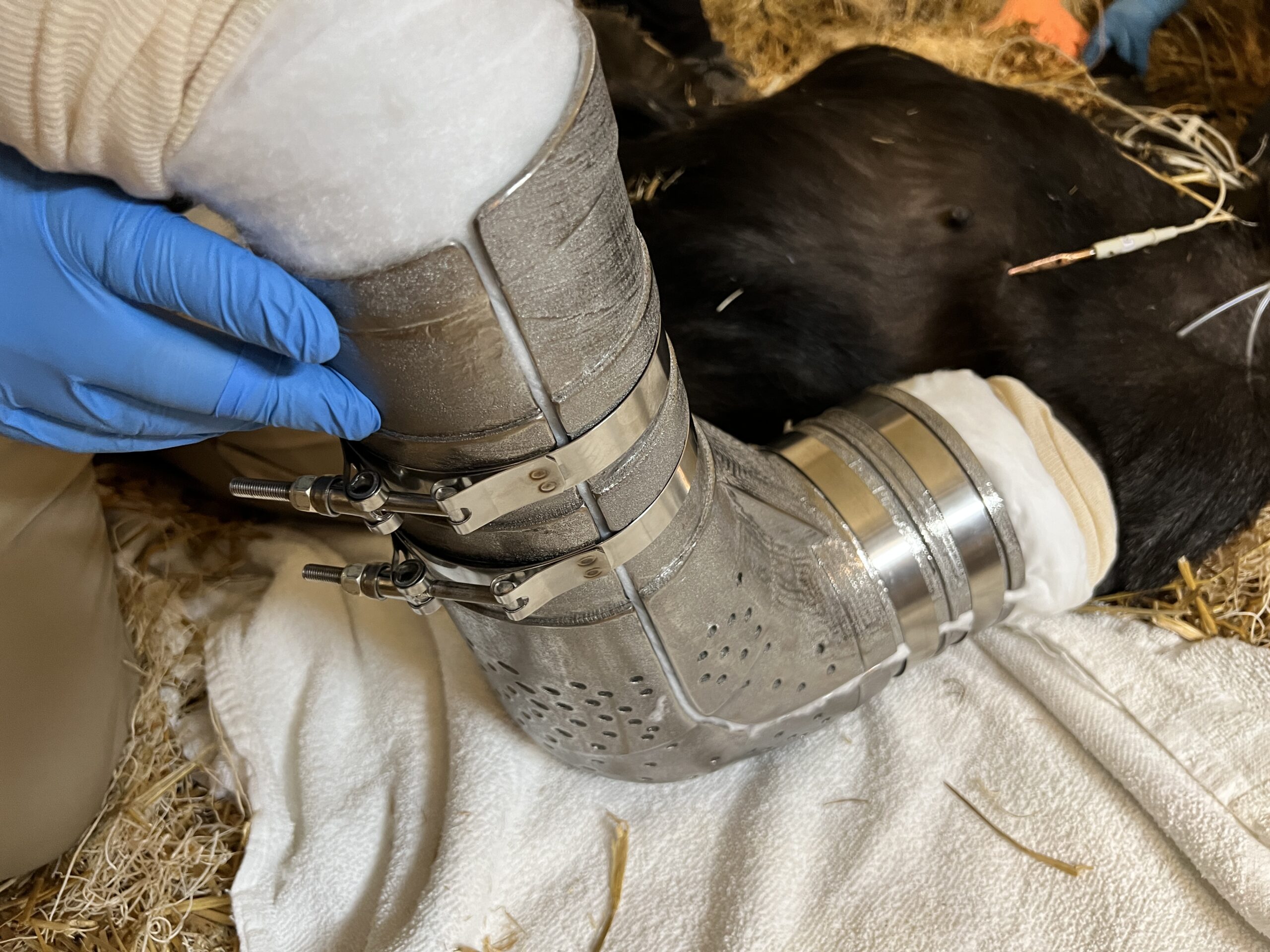 Gladys being fitted with GE’s gorilla-proof 3D-printed titanium cast. Image used courtesy of Cincinnati Zoo