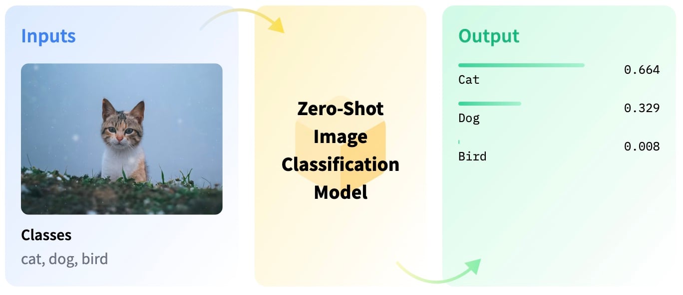 Vision learning modules are tasked with returning a text-based classification from a list of potential categories given an image it has not seen before in its training data set. The image below does a good job of summarizing how the model combines text and visual data.