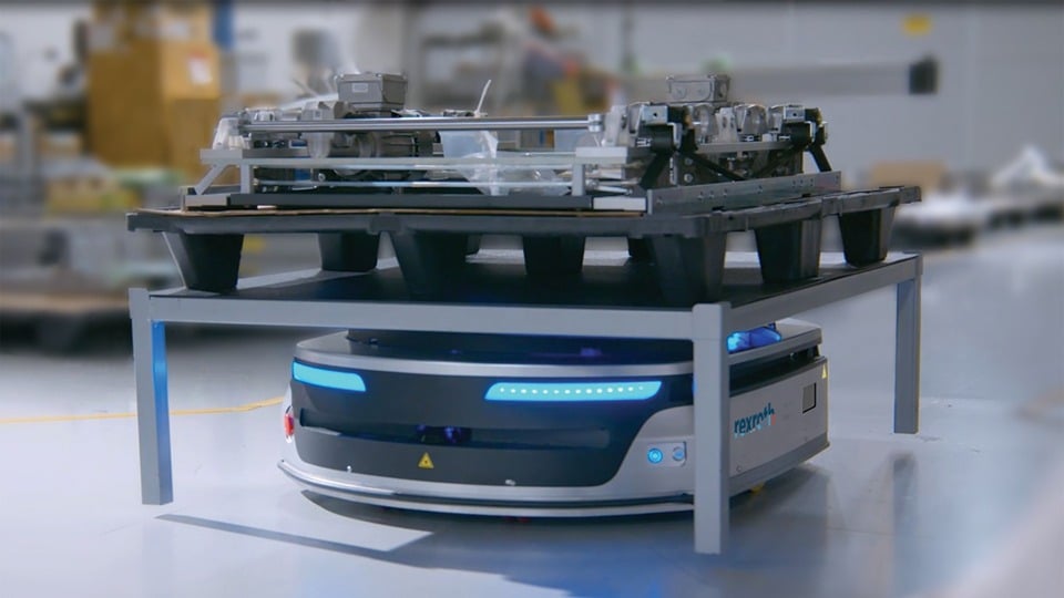 The MP1000R 1000 kg payload AMR will be demoed transporting materials at ATX West. Image used courtesy of Bosch Rexroth