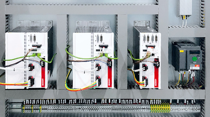 Beckhoff’s AX5000 Servo Drive in the laser cutting machine control cabinet. Image used courtesy of Beckhoff.
