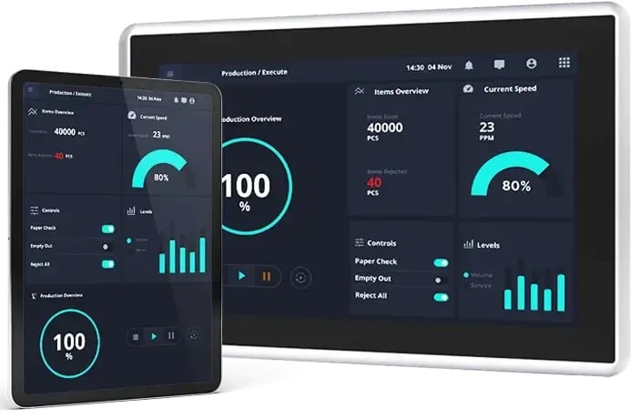 The EG500 being used for machine efficiency dashboards. Image used courtesy of Beijer Electronics