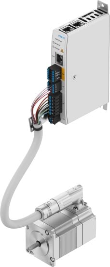 Festo’s new developer’s kit includes a CMMT-ST servo drive and an EMMT-ST stepper motor. Image used courtesy of Festo
