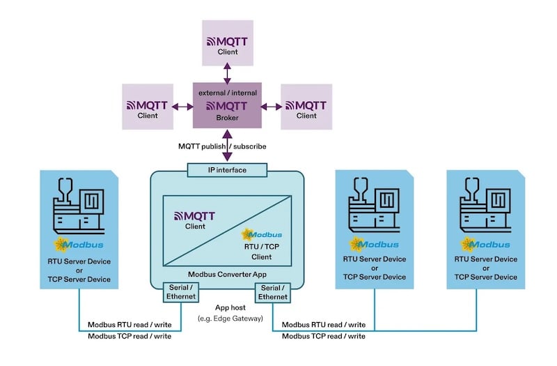 The netFIELD app acts as a platform-independent software container. As such, it allows for the quick conversion of Modbus data into Message Queuing Telemetry Transport (MQTT) protocol. The primary advantage of doing so is that many IIoT devices use MQTT, which is lightweight, open, and simple. As many IIoT devices end up on low-bandwidth, high-latency, electrically noisy networks, MQTT is a good choice for relaying data.