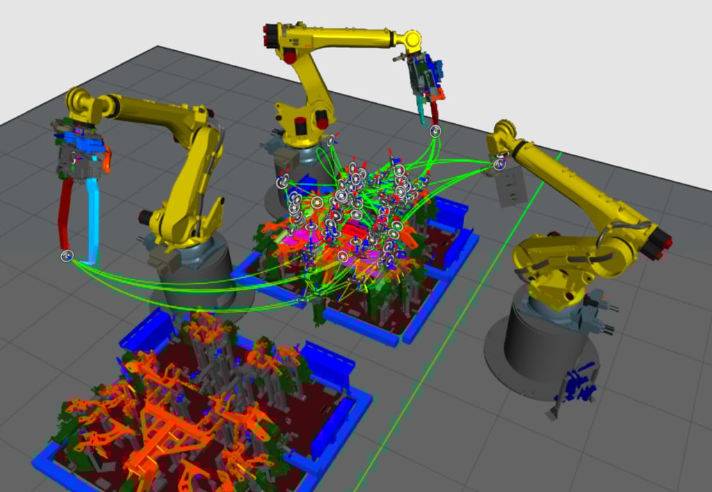 Mitsubishi will incorporate Realtime Robotics’ motion planning technology in a 3D simulation to optimize factory automation. Image used courtesy of Realtime Robotics
