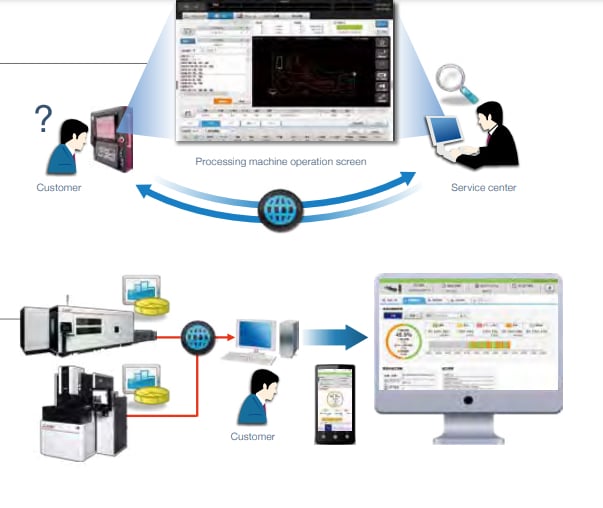 Mitsubishi’s remote maintenance solution allows its field service engineers to simultaneously analyze a customer’s CNC machine parameters and alarm history in real-time while troubleshooting errors or issues stopping its proper functioning.
